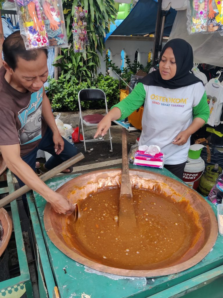 We were feeling a little adventurous, so we tried some of the food offerings. The first was dodol, an Indonesian sweet made from palm sugar. The vendors were making it in huge pans and offering tastes. It was like a kind of solid-ish caramel. We tried the plain kind and the durian flavor, and decided we liked the durian, so I bought some!