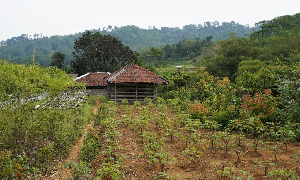 We met up at a coffee shop and climbed into a shared car for the ~90 minute drive south to Sentul, where we met our guide. We started off down a path, winding through farms and around green hills.