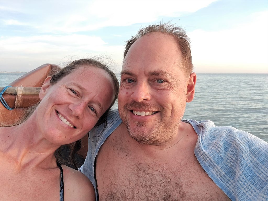 The ride was beautiful and calm, and we marveled at the crazy clifftop hotels. With a bit of time to spare before sunset, we moored in a calm-ish spot and went for a swim. It was so refreshing to cool off in the blue, crystal-clear water. The sunset was a muted series of golds; a gorgeous end to a day of exploring.
