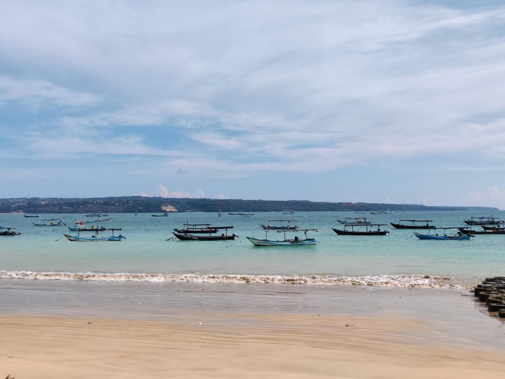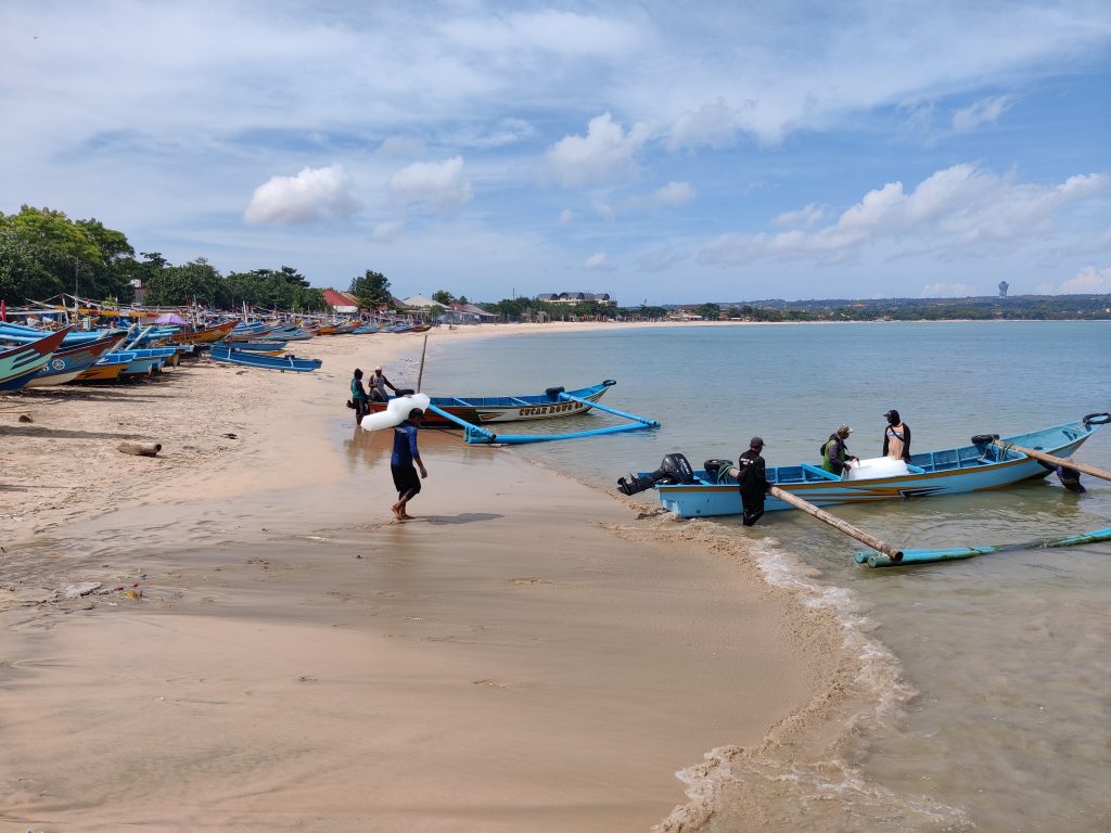 We did a lot of hanging around the hotel’s infinity pool and reading, but we did explore the area a bit. Jimbaran Beach is the only place on the peninsula where the waves are calm enough for easy swimming. We’d also heard it has great beachside fish restaurants, since the local fishermen launch from the beach’s calm waters.