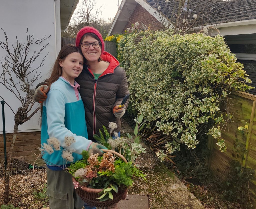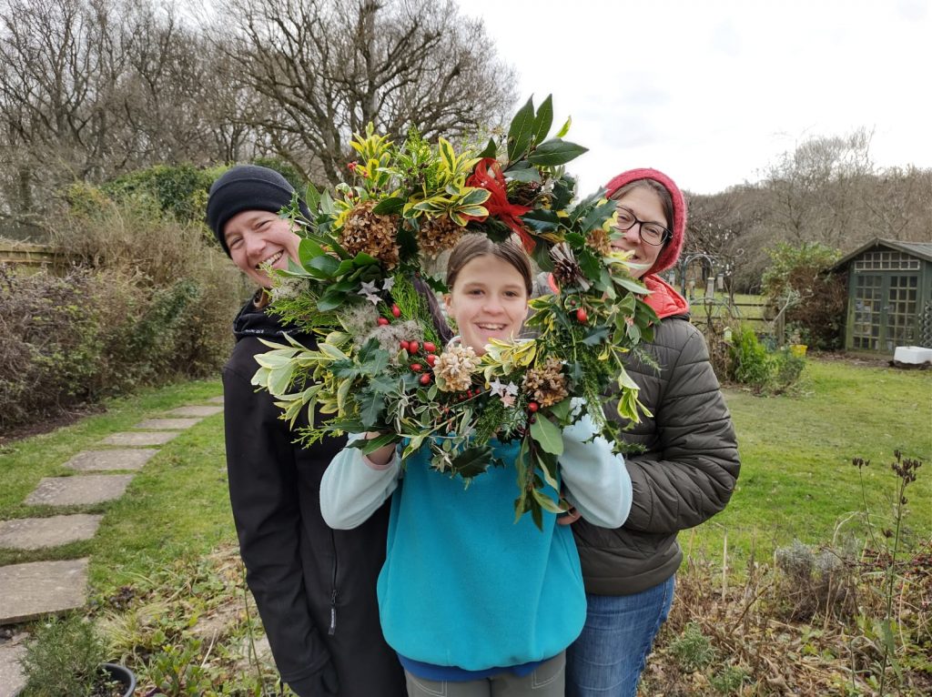One of the awesome things about their new house is that it has a huge garden. Angie, Christi, and Ellie spent an hour or two collecting various dried flowers, leaves, and evergreen boughs from the garden and making them into a wreath for the front door.