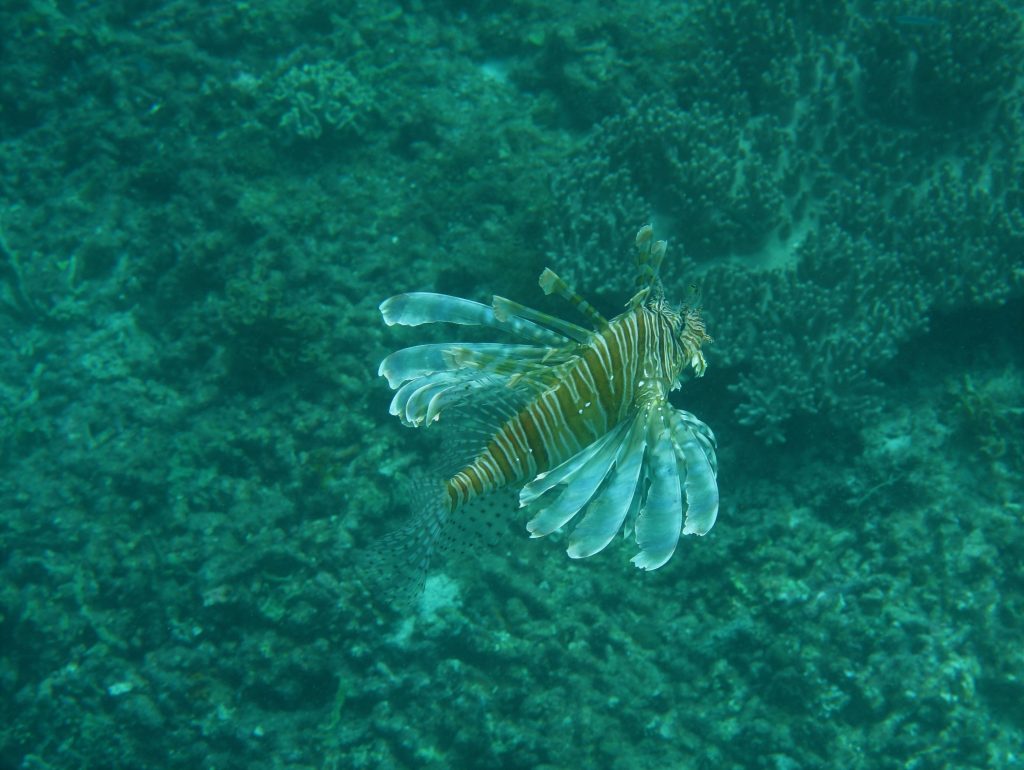 We hadn’t been diving in about 5 years, so we did a refresher course and ended up doing 6 dives over the course of three days. It was nice to try out diving again, and we managed to see quite a few things. The highlight was probably our dive at Manta Rocks. We went down to about 15m and then sat on the bottom and waited for 5-10 minutes before the mantas started to appear. A huge one (maybe 10-12 feet across) swam right over Adam. We saw 4-5 of these beautiful creatures. It was pretty unreal, since visibility wasn’t great that day and so it was like a huge shadow would appear out of the darkness and seem to fly over the top of us and around.