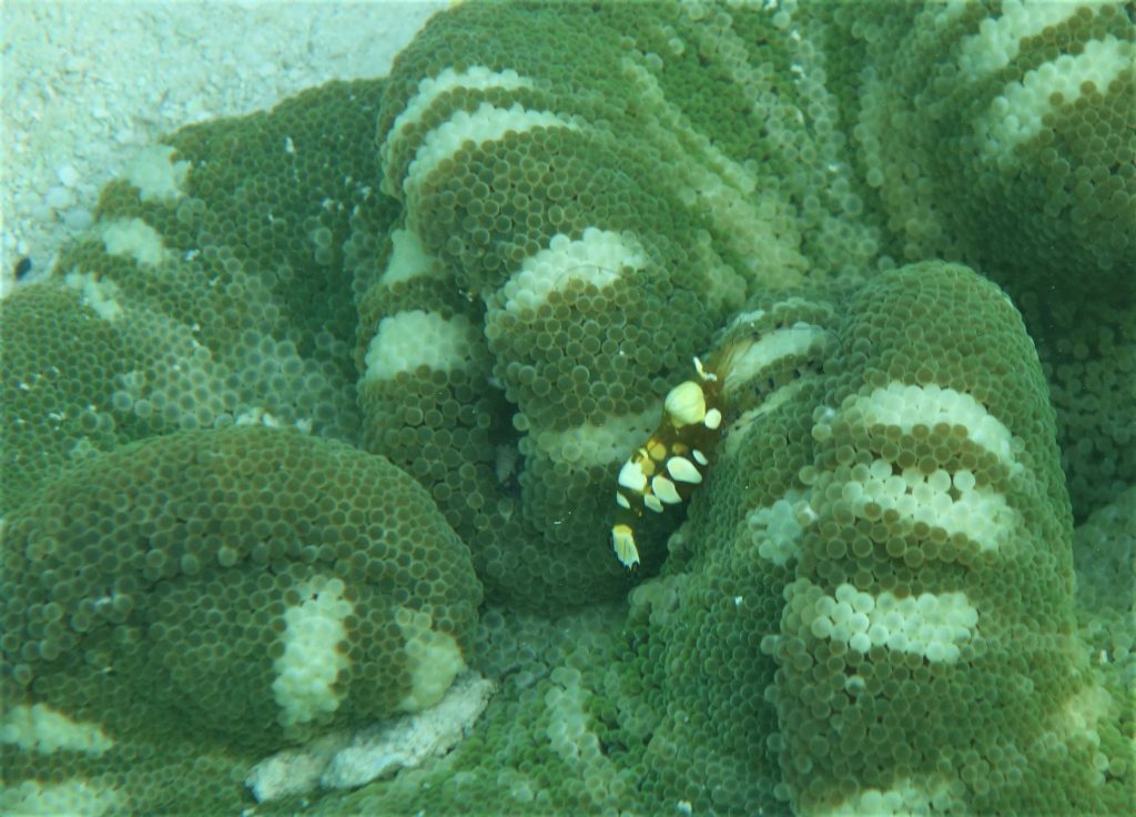 We also saw a number of sea turtles, stingrays, black tip reef sharks (mostly they were in the shallows under the resort restaurant!), and a couple of different types of nudibranch. On one dive the guide pointed out tiny, blue and almost transparent shrimp.