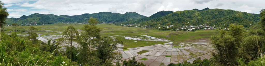 After a quiet, rainy night at Mbeliling Ecolodge, we headed off across the island. We stopped for a view of the spiderweb rice fields. Each wedge is is one person’s rice fields, with the village dividing them out this way to the people. The view was quite lovely, and it was an interesting solution to land distribution. At certain times of the year the village has ceremonies “of thanks and praise” (as described by Aristo) at the center of the web. During the ceremony they will put a chicken or an egg in the center of the “web”.