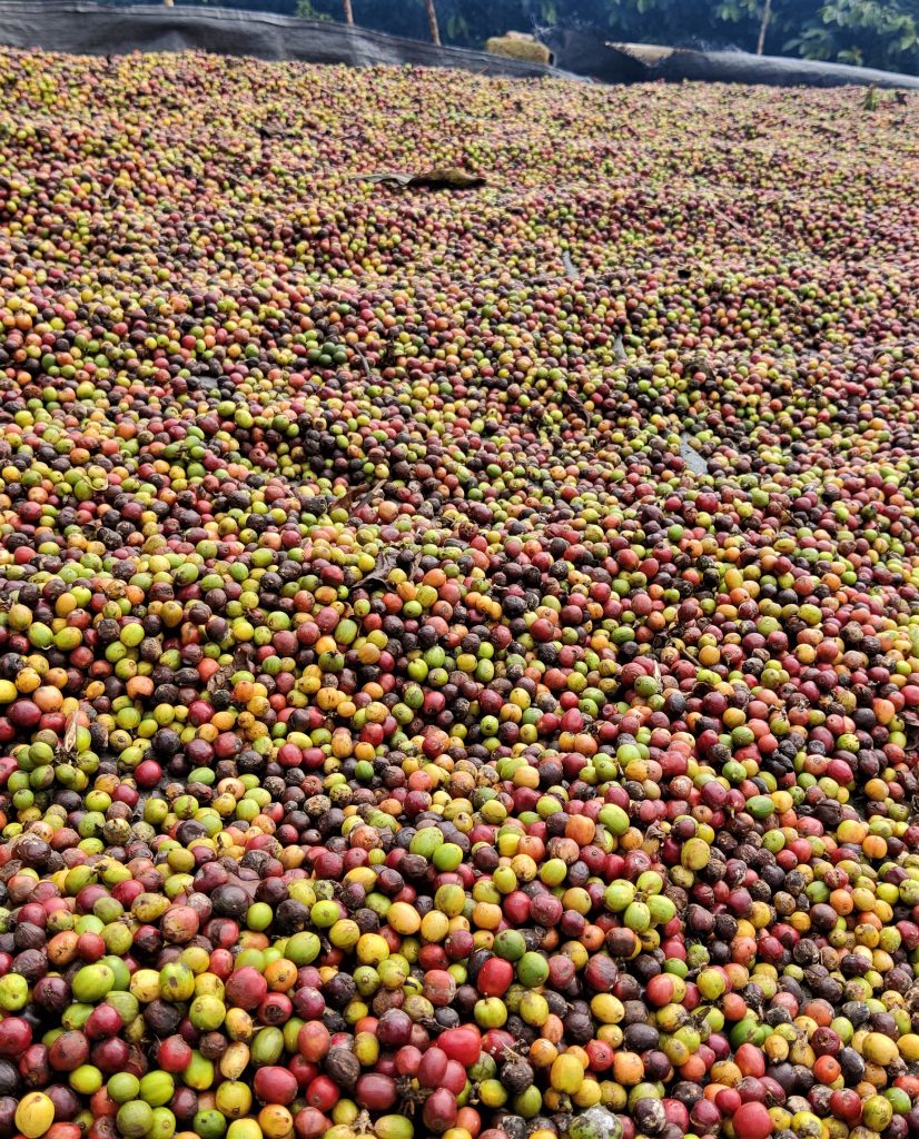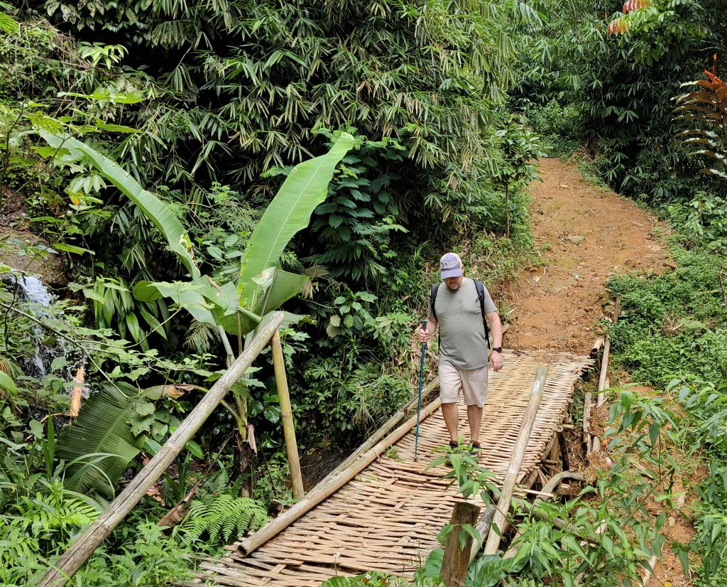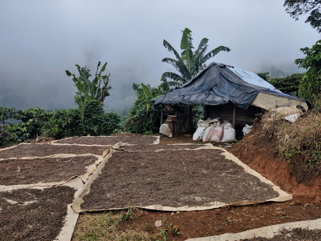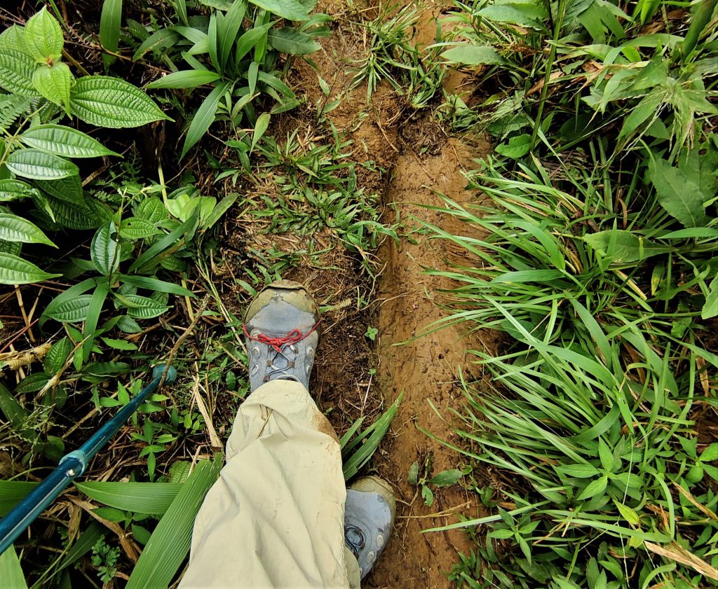 It seemed we were following the trail the farmers use to visit their crop. Indeed, at one point we came out onto level ground where a farmer was drying beans in the sun.