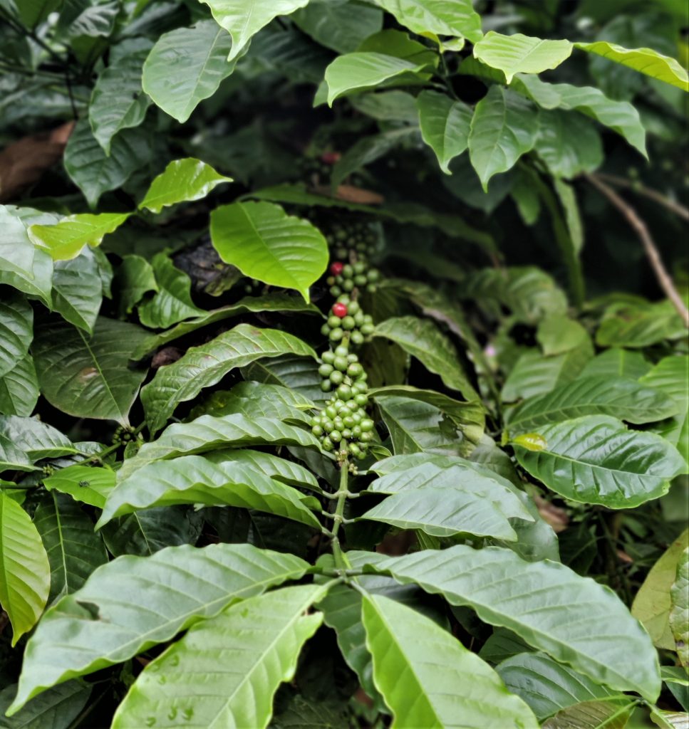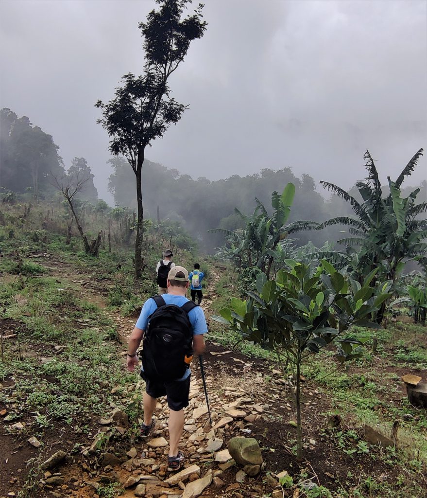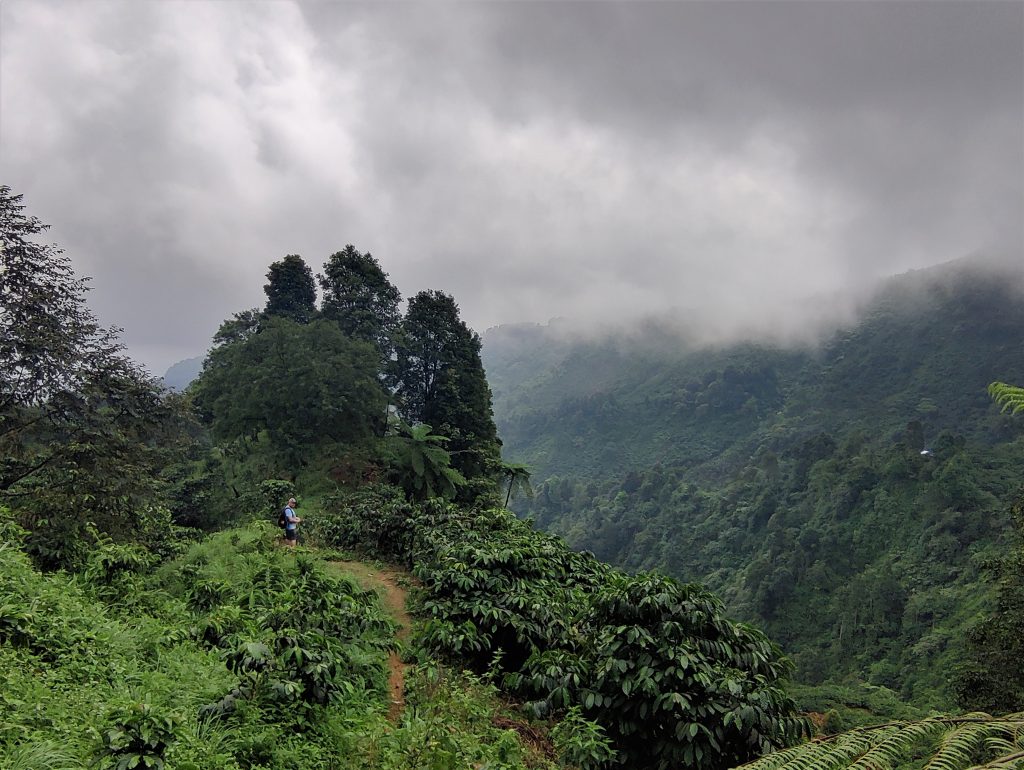 Soon we left the main road/trail and headed down a narrow path into the coffee fields. The trail grew thinner and more difficult as we worked our way down the mountain.