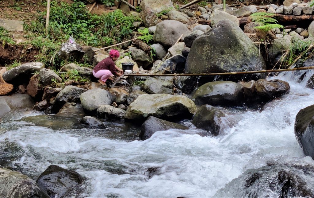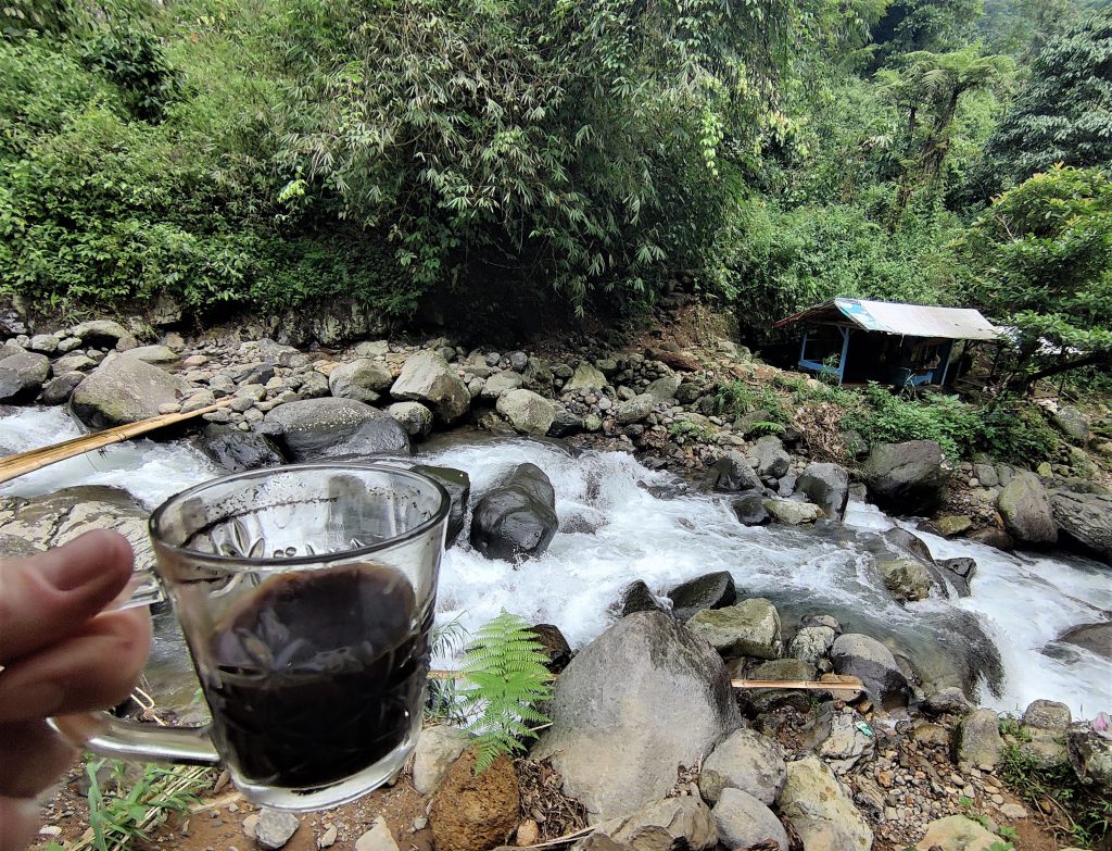 Eventually the trail came out next to a rushing river with a waterfall to swim in. Perched above the river there was a place to buy a cup of coffee. It was a perfect spot for a short break before the final stretch of the hike.