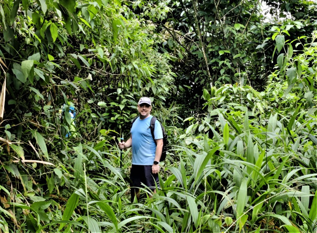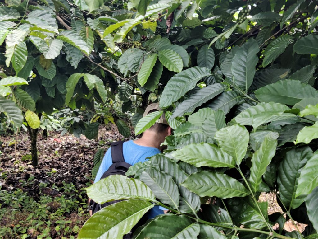 Eventually, we were winding our way through and under coffee plants. Unfortunately, the hiking shoes I’ve owned for probably 10 years decided to fall apart. Luckily our guide was resourceful and tied the sole back up for me so I could continue walking.