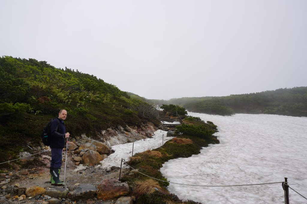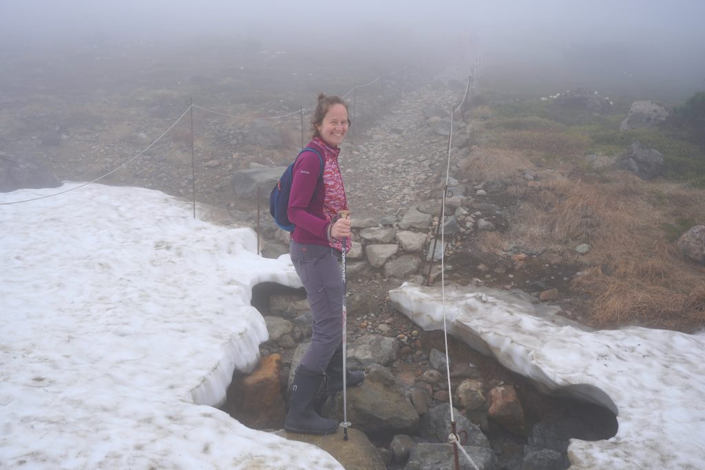 For the full day we spent at Asahidake, we decided to take the ropeway up the mountain and hike around on the short loop trail near the ropeway station. Unfortunately, it was very cloudy and rainy that day, so there wasn’t a view of Mt. Asahidake. There were many beautiful flowers blooming, however, and we got to enjoy the crisp air while hiking through some snow.