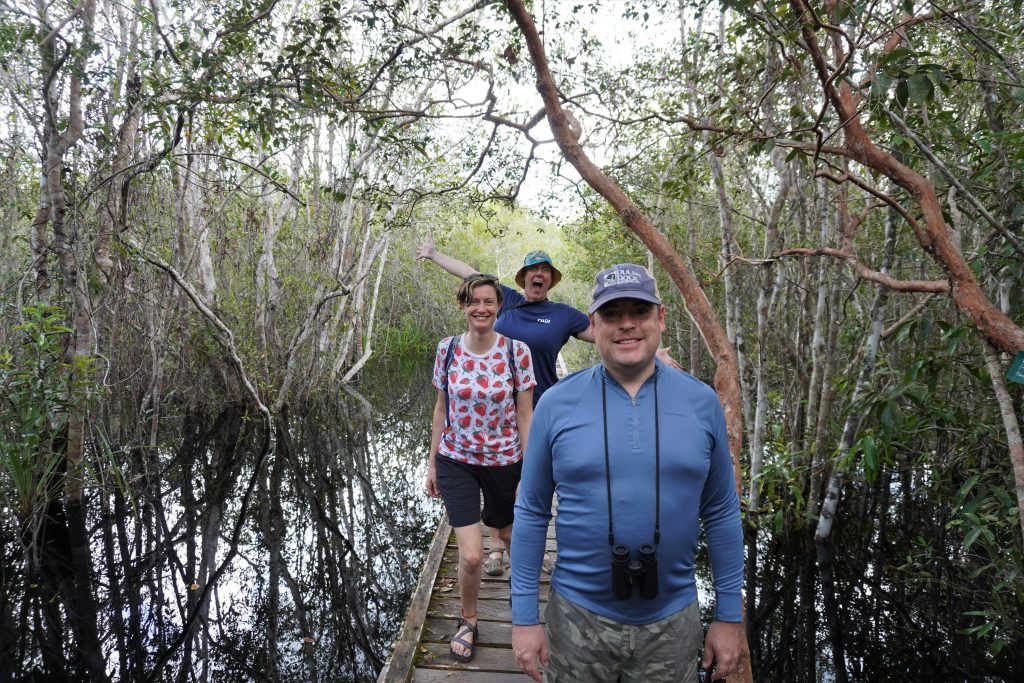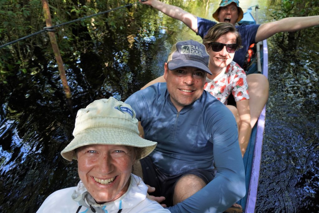 To get to the feeding station in each location we had to walk a bit through the forest, which was an opportunity to see other wildlife on the way. Sometimes, getting to the feeding station was an adventure. One of the areas was flooded, so we ended up piling into a narrow canoe and then a local person towed the boat through the water.