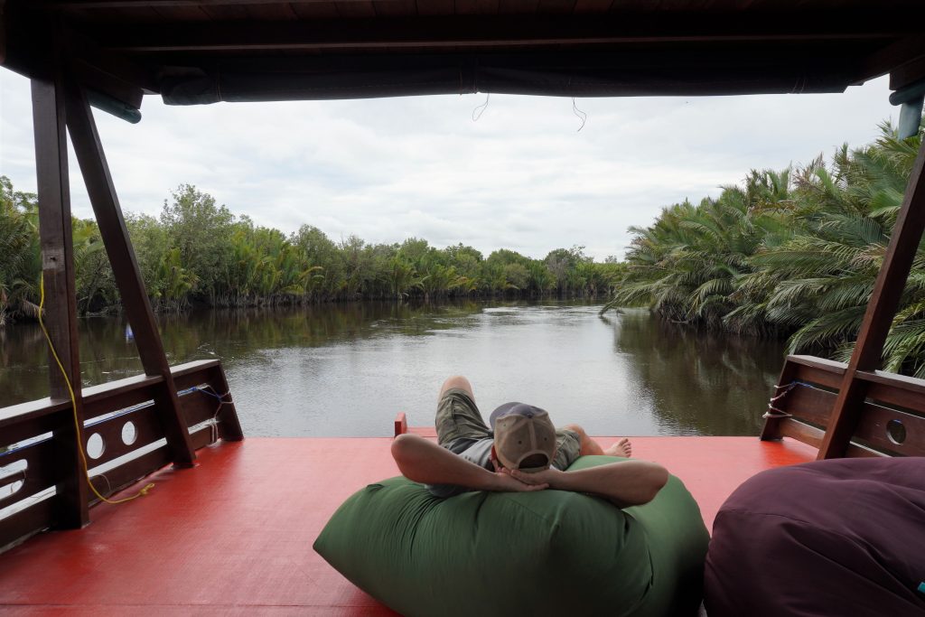 One of the best things about this trip was cruising on the boat. When the boat was moving there was a little breeze, and sitting up at the front in a beanbag chair or a hammock was heavenly. As the boat motors upriver away from civilization you’re surrounded by green.