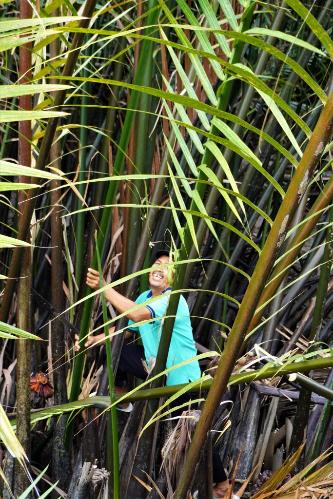 Our boat captain harvesting the shoot that would be used to make our birthday hats