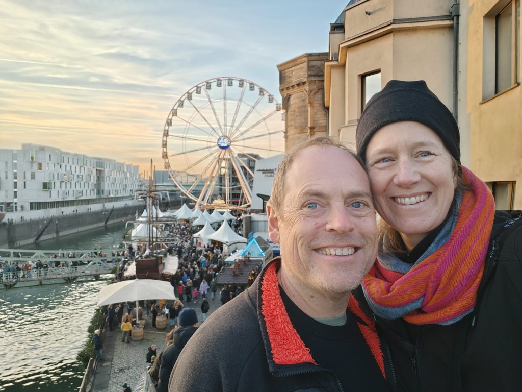 Enjoying the Kölner Hafen-Weihnachtsmarkt am Schokoladenmuseum in the late afternoon light