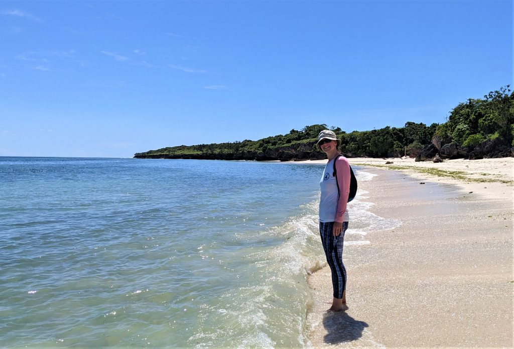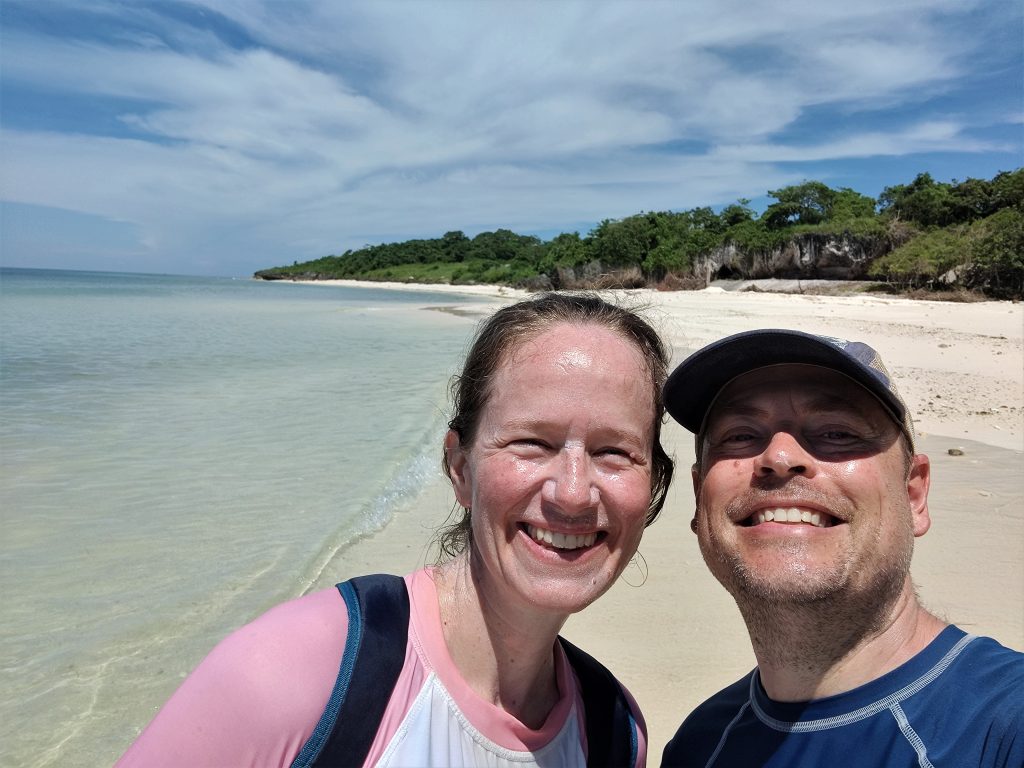 It was another 15 minutes ride along the coastal road to Oro Beach. What a fantastic discovery that was! The beach is amazing – white sand and blue water, with overlooking cliffs providing some shade in places. And best of all, we had it all to ourselves! We could hardly believe it. After the heat of the bike ride, it was refreshing to get into the water and relax all by ourselves in this little bit of paradise.