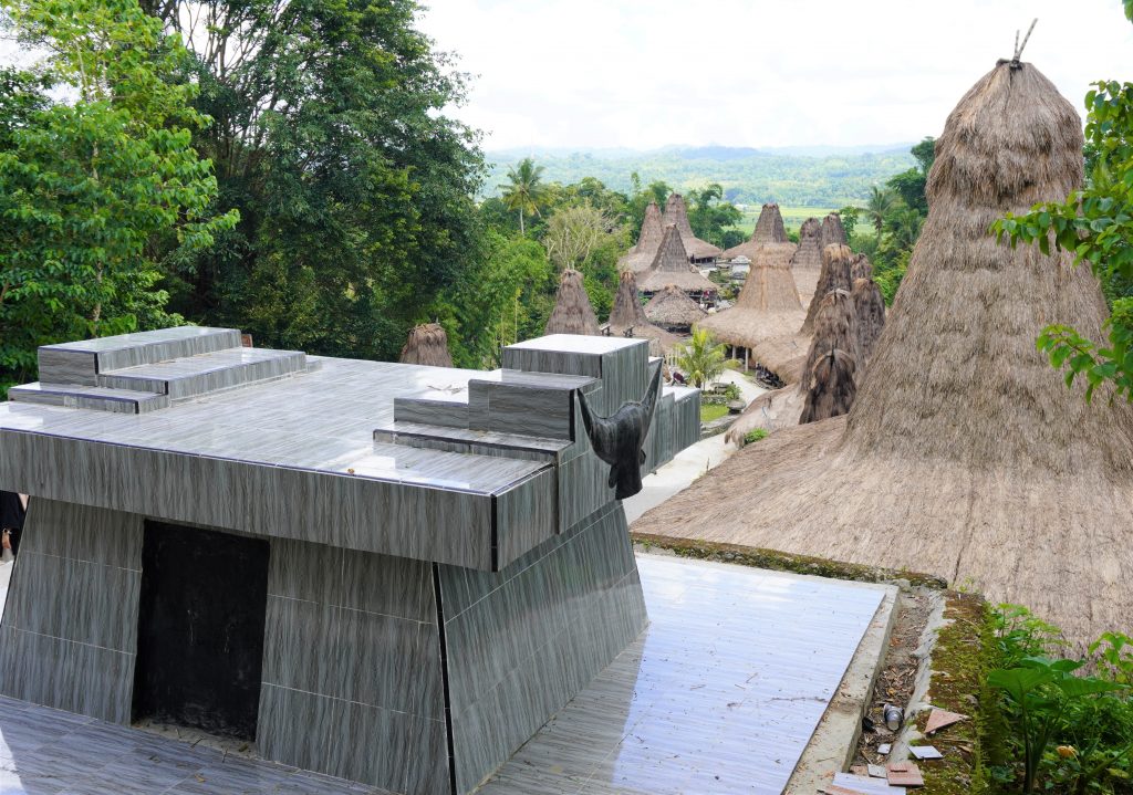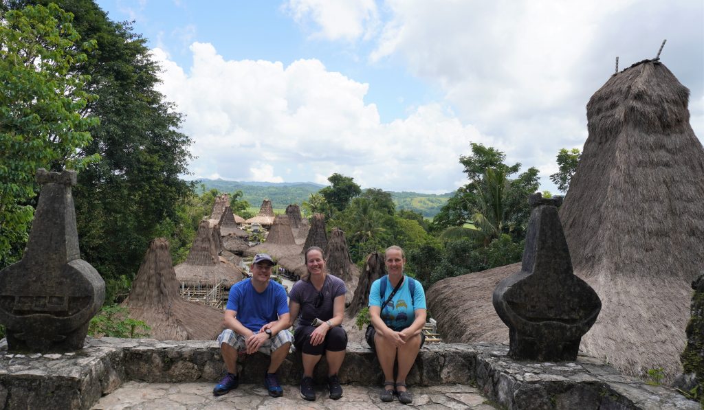 Next up was Prai Ijing traditional village. At this point, Adam and I have seen quite a few Indonesian villages. This one is characterized by houses with very tall roofs. Luckily on this day, there was a guy who spoke English hanging out at the village, so he showed us around and told us about it. Normally that would be the job of the student guide, but she was quite tongue-tied. She barely said a peep all day, which meant that in most places we didn’t learn much about where we were. We got a good idea about life in this village, though, thanks to the kindness of a stranger.