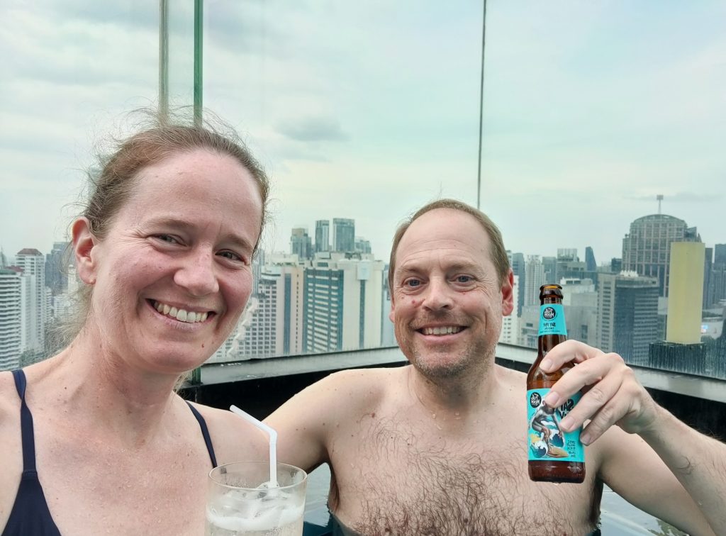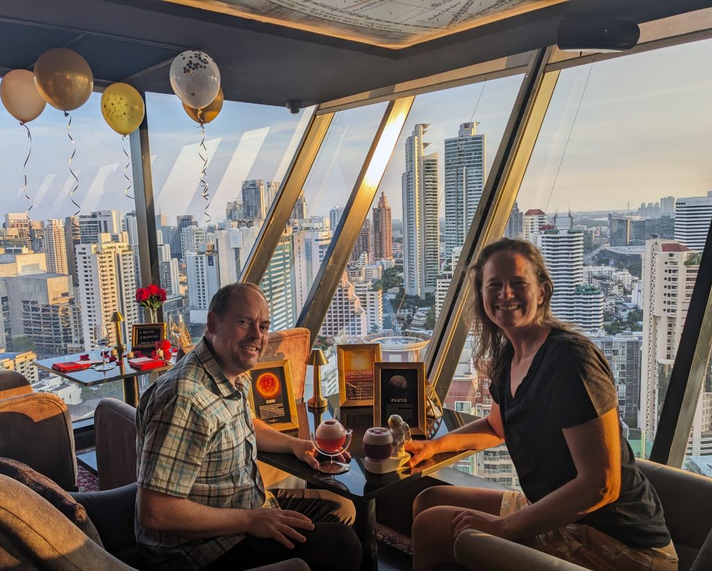 Enjoying a sunset cocktail at The Continent’s rooftop bar.