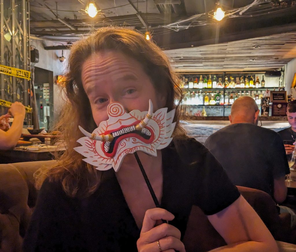 We were supposed to take selfies with these masks? Maybe for Halloween?