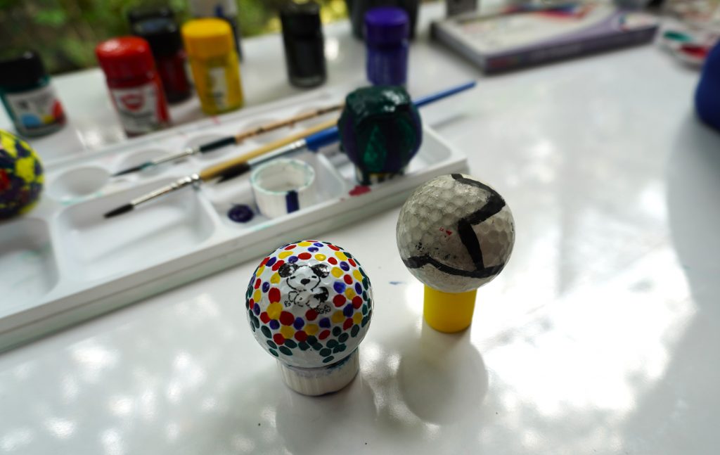 The golf balls we painted while listening to vinyl records.