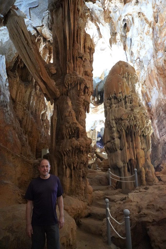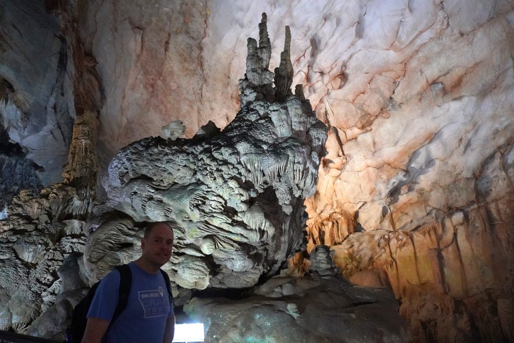It’s hard to get a sense of how large this cave is, but this photo gives some idea of the scale of the huge stalagmites.