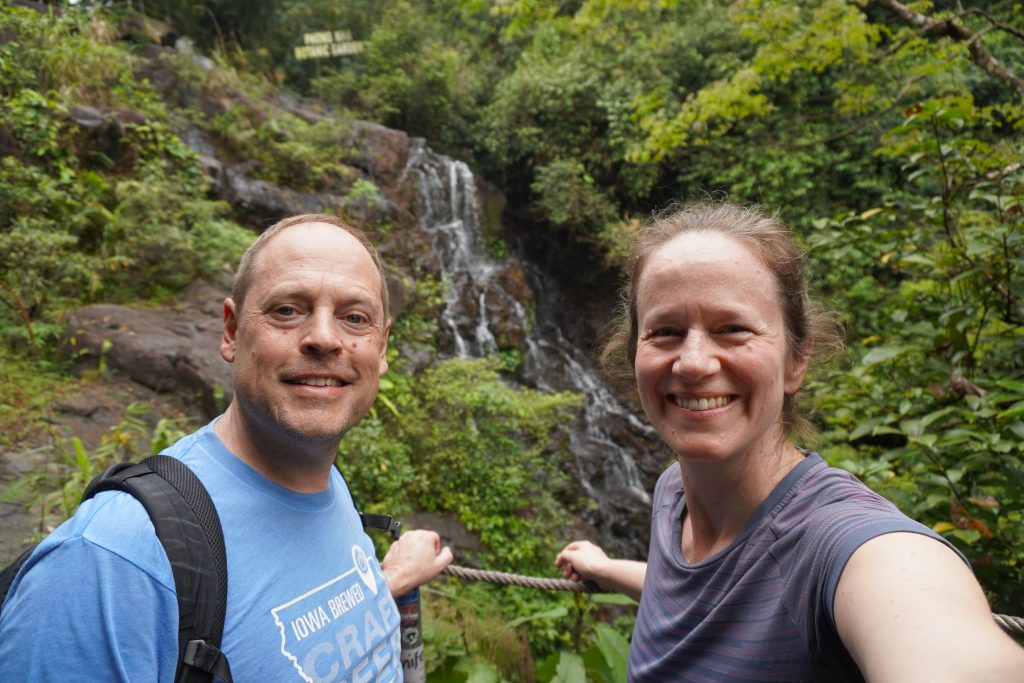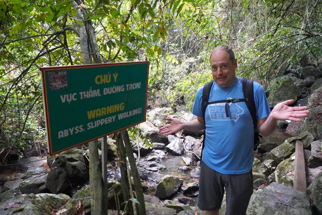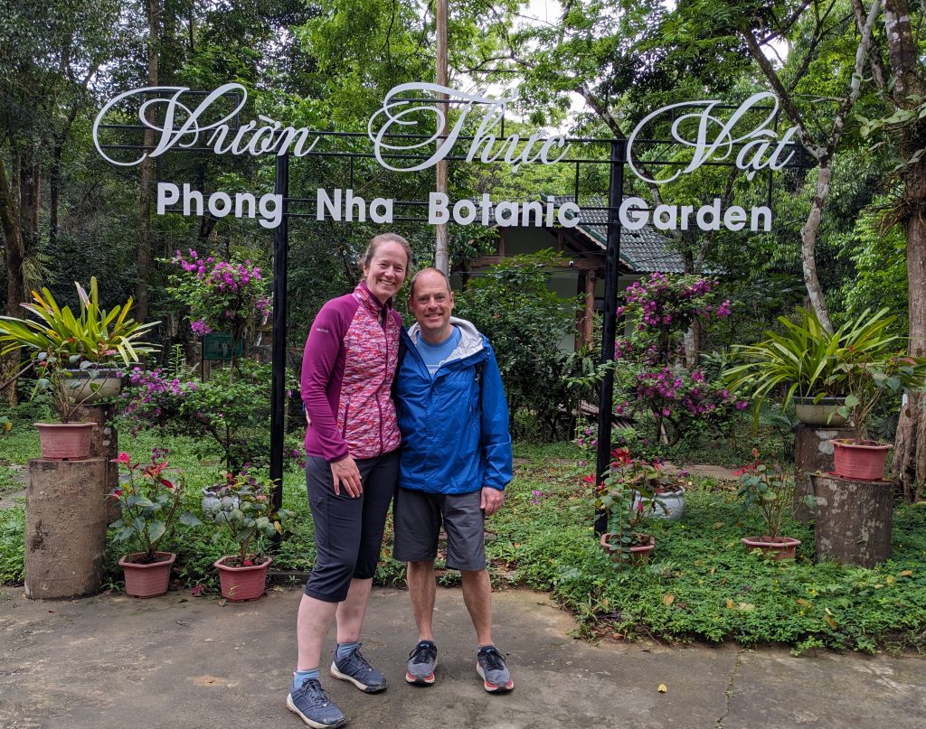 Our first stop was the Phong Nha Botanical Gardens. This is more of a forest and less a tended garden. There are several hikes available, and we decided to do the short waterfall hike the ranger at the ticket booth pointed out. It turned out to be a bit more than we bargained for, complete with warnings of a dangerous abyss and some climbing up ladders and over boulders. We did enjoy the views!