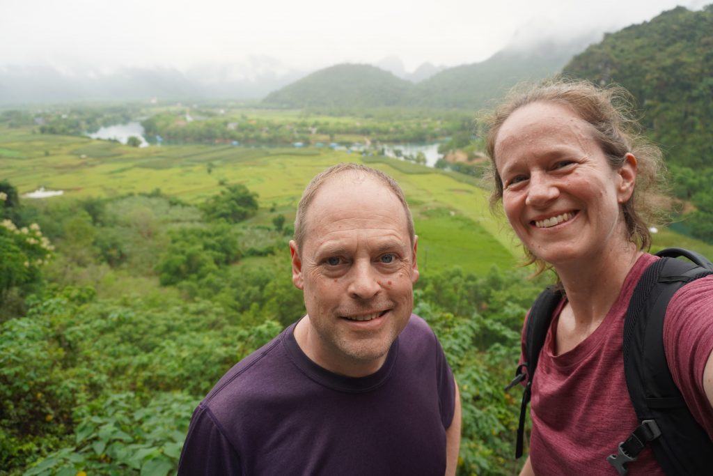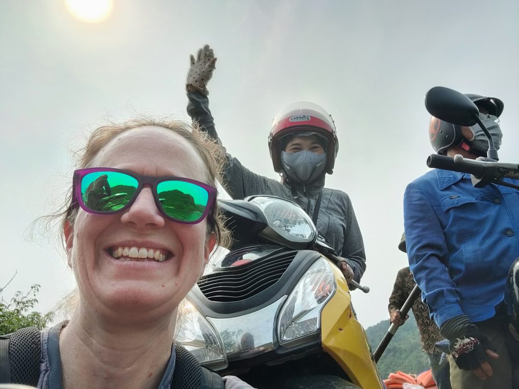 Pausing for a selfie while hiking above Phong Nha Cave.