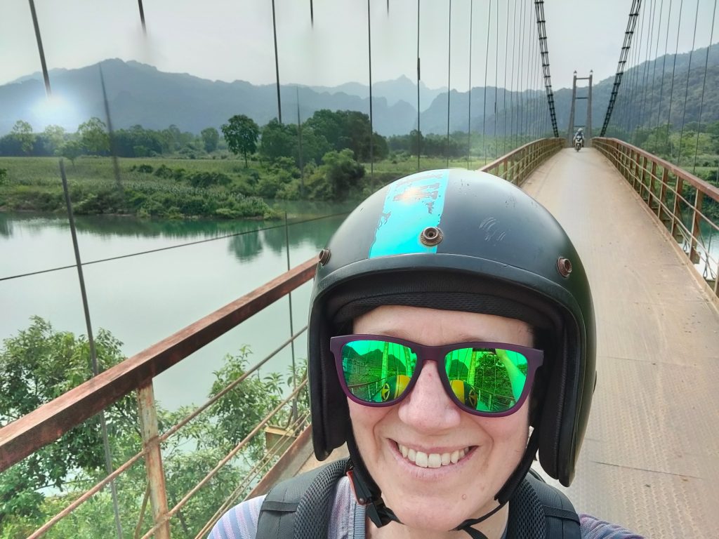 After exploring the botanical gardens, we got back on the scooters and headed for a gorgeous drive through the karst hills towards Paradise Cave. Our drivers stopped at a famous river bridge with a great view of the surrounding hills in between, and the butterflies continued to entertain us.