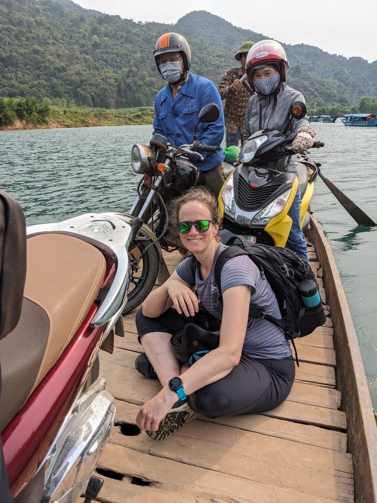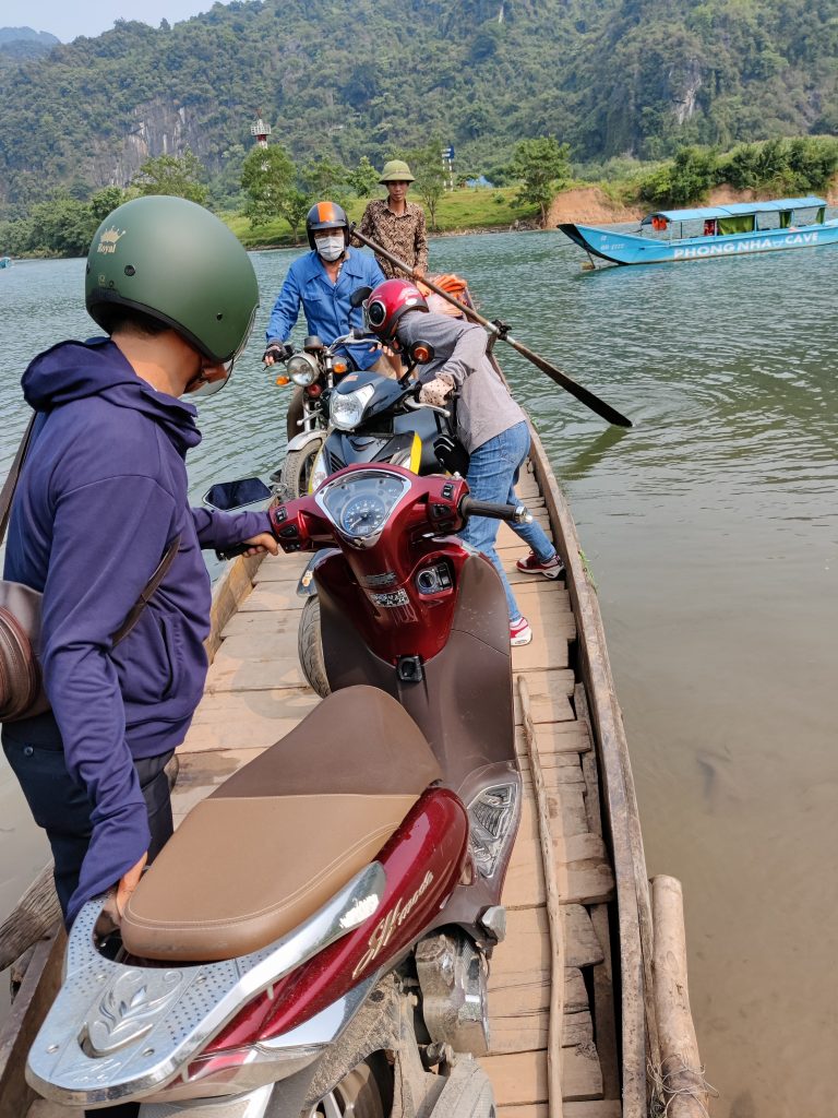 On the way back to the Farmstay, our Riders took us on the scenic route, which included two scary narrow bridges and a scooter ferry ride across the river. The ferry ride was a tiny boat that they packed with our two scooters and all of us on the deck. Everyone else got to stand, but they insisted Angie sit on the deck. Maybe her center of gravity is too high for the narrow, overloaded boat?