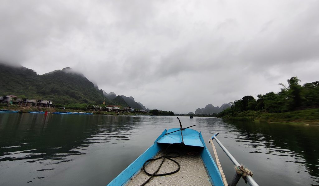 View of the Con River from the front of the boat on the way to Phong Nha Cave.