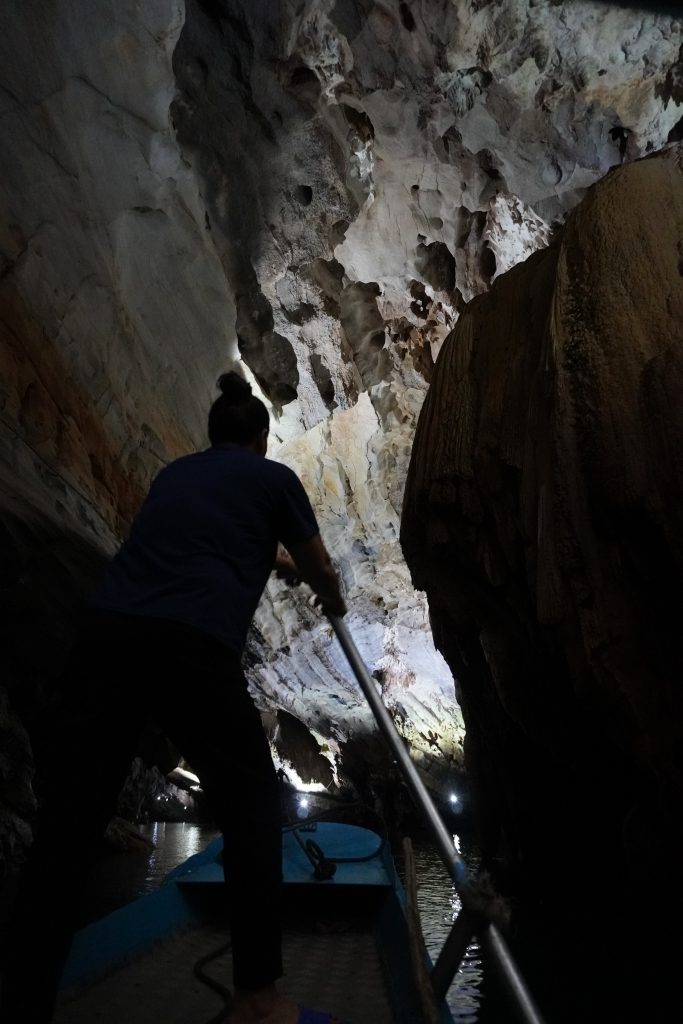 One of our boat drivers poling us along inside Phong Nha Cave.