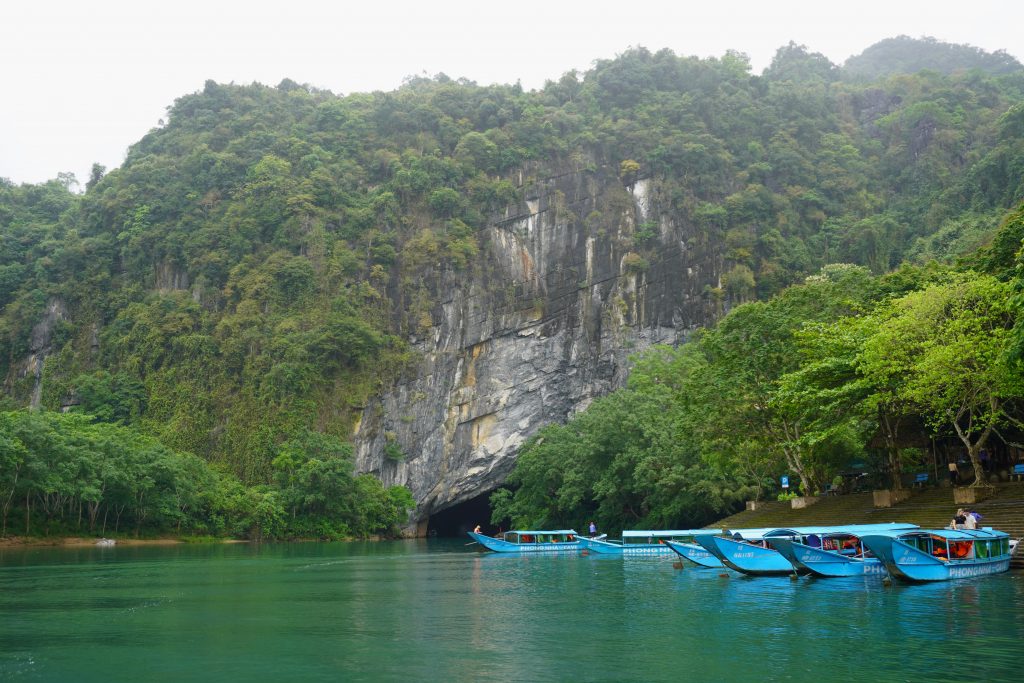 Boats docked just outside Phong Nha Cave’s river entrance.